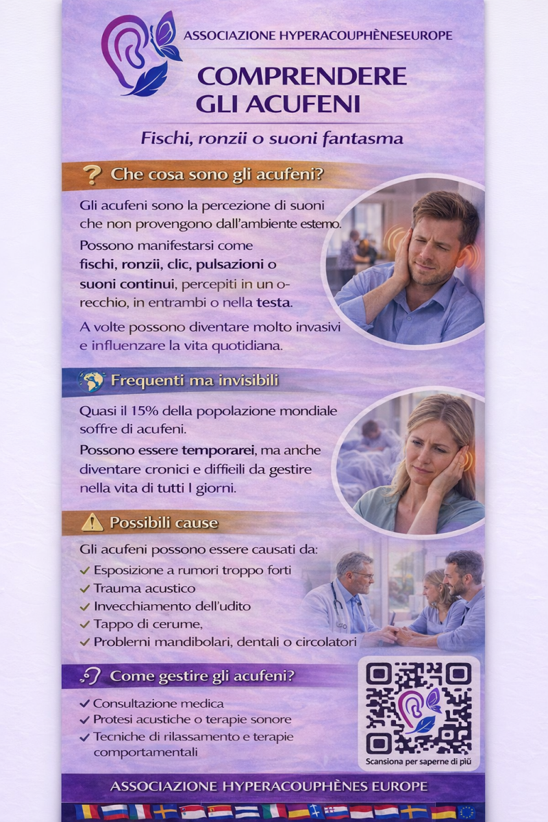 In Hyperacouphènes Europe riconosciamo gli acufeni come una vera disabilità, non come un semplice sintomo.